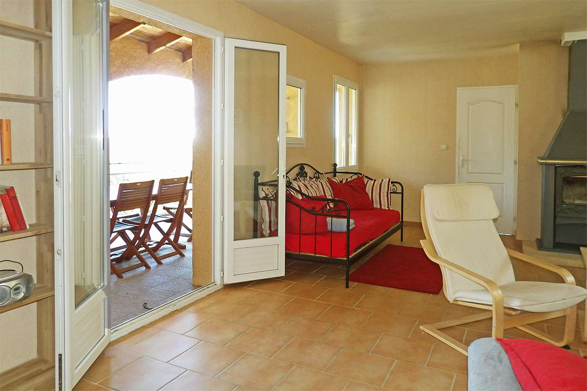 Wohnzimmer mit Blick zur Veranda Villa Fleurie