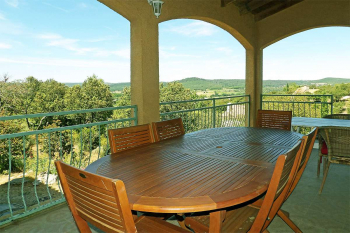 Unser Ferienhaus "Villa Fleurie" liegt herrlich eingebettet in einem Steineichen-Wald an einem Osthang mit wunderschönem Blick über das flache Tal unterhalb von Saint Siffret.